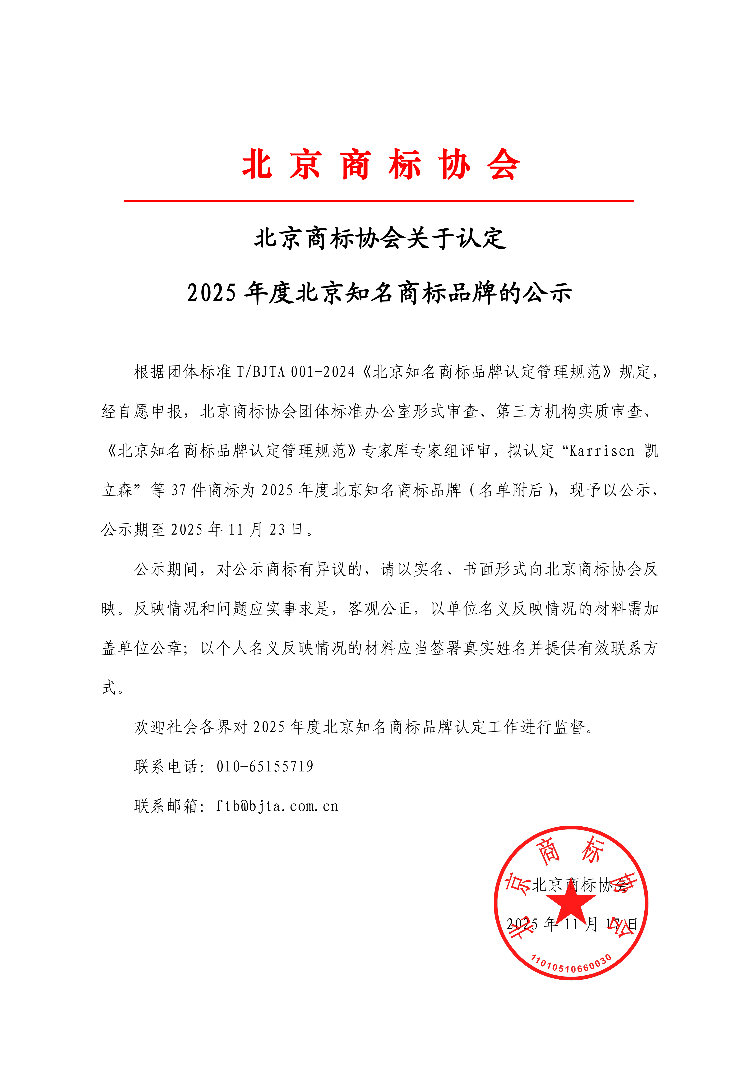 北京商标协会关于认定 2025年度北京知名商标品牌的...